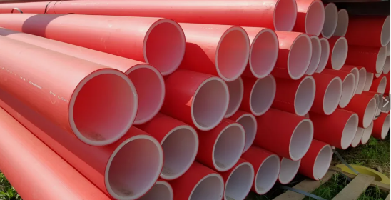 Трубы ПНД красные для защиты кабеля в диаметре от 50 до 630 мм, изготовленные согласно ГОСТ Р МЭК 61375.24-2014 и ГОСТ Р 70751-2023 из ПЭ100, подходят для прокладки трубопровода в земле открытым способом, в траншею. Двухслойные красные полиэтиленовые трубы также подходят для прокладки кабеля методом ГНБ. А также труба трёхслойная с усиленным маркировочным слоем, внутренним негорючим слоем и промежуточным слоем из термостойкого полиэтилена. Выдерживают такие трубы до 500 кВ.