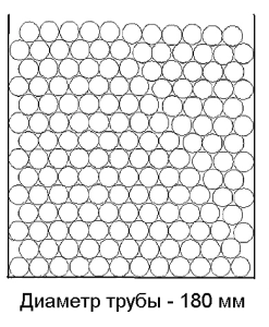Труба Ø 180Количество труб: 170 шт. Количество, п.м.: 12 п.м. – 2040 п.м.; 12,5 п.м. – 2125 п.м.; 13 п.м. – 2210 п.м. Высота загрузки: 2,52м. Количество рядов: 14 шт. (в рядах по 12,14 шт.) |